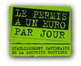 *Seuls les établissements prêteurs (banques, établissements de crédits...) et les écoles de conduite qui ont signé une convention avec l'Etat sont partenaires de cette opération. Ces établissements sont identifiables par le logo « Permis à 1€ par jour - Etablissement partenaire de la Sécurité Routière